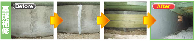 建物全体の誘発破壊を防ぐ、コンクリート基礎の補修・補強を行います。