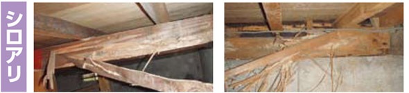 シロアリは今から3億年も昔の古生代の石灰紀に、木材を食べるゴキブリの祖先から分化した昆虫で、昆虫分類学上は、等翅目(等しい羽を持つ仲間)に属し、アリとは類縁関係は遠く、ゴキブリに近い昆虫である。体長5mm、小粒大の小さな小さなアリが、大きな家を食いあらし、ついには家屋を破壊してしまうという恐ろしい事実。わが国でのシロアリによる被害額は、火災の損害額、年間約1000億円を上回るといわれている。